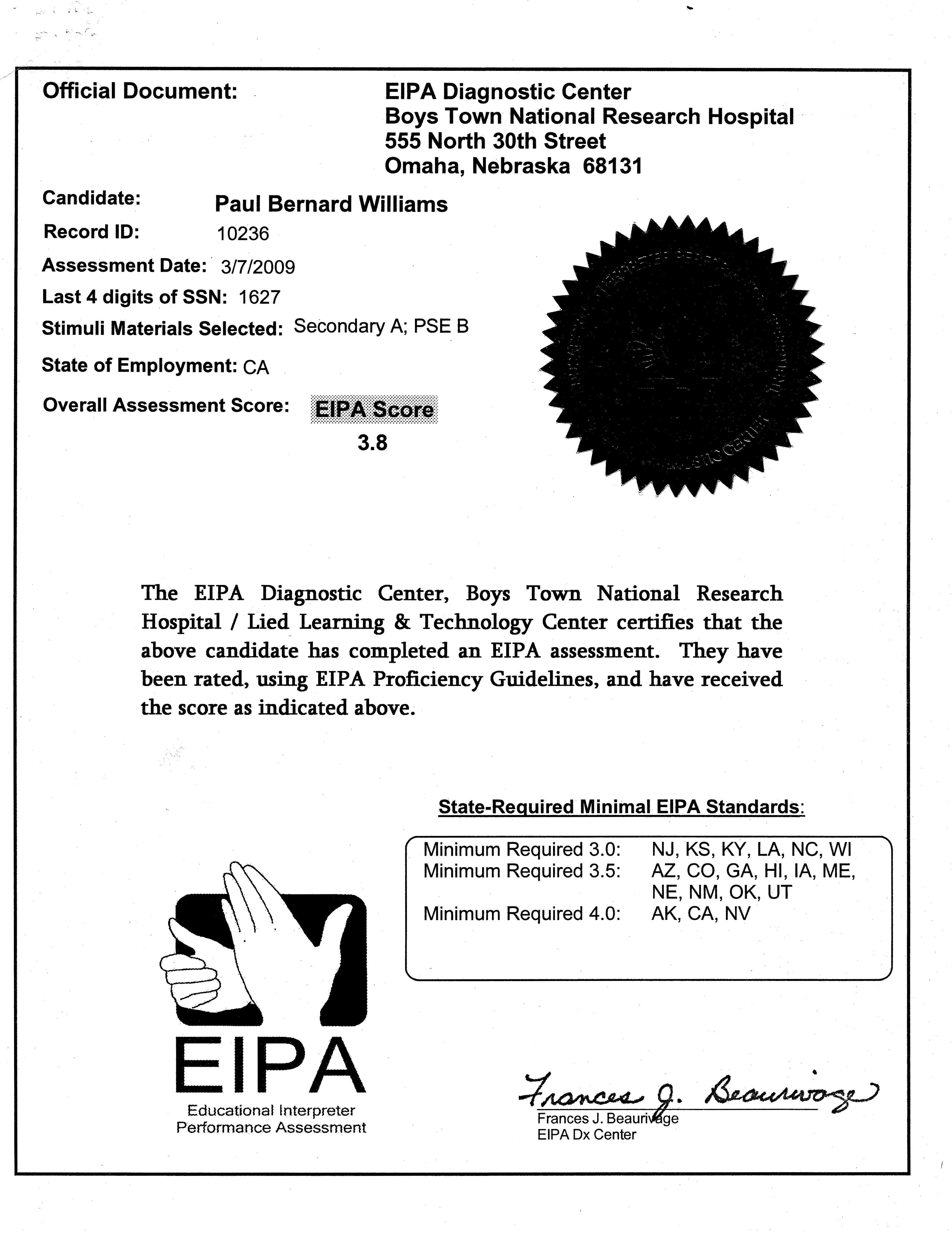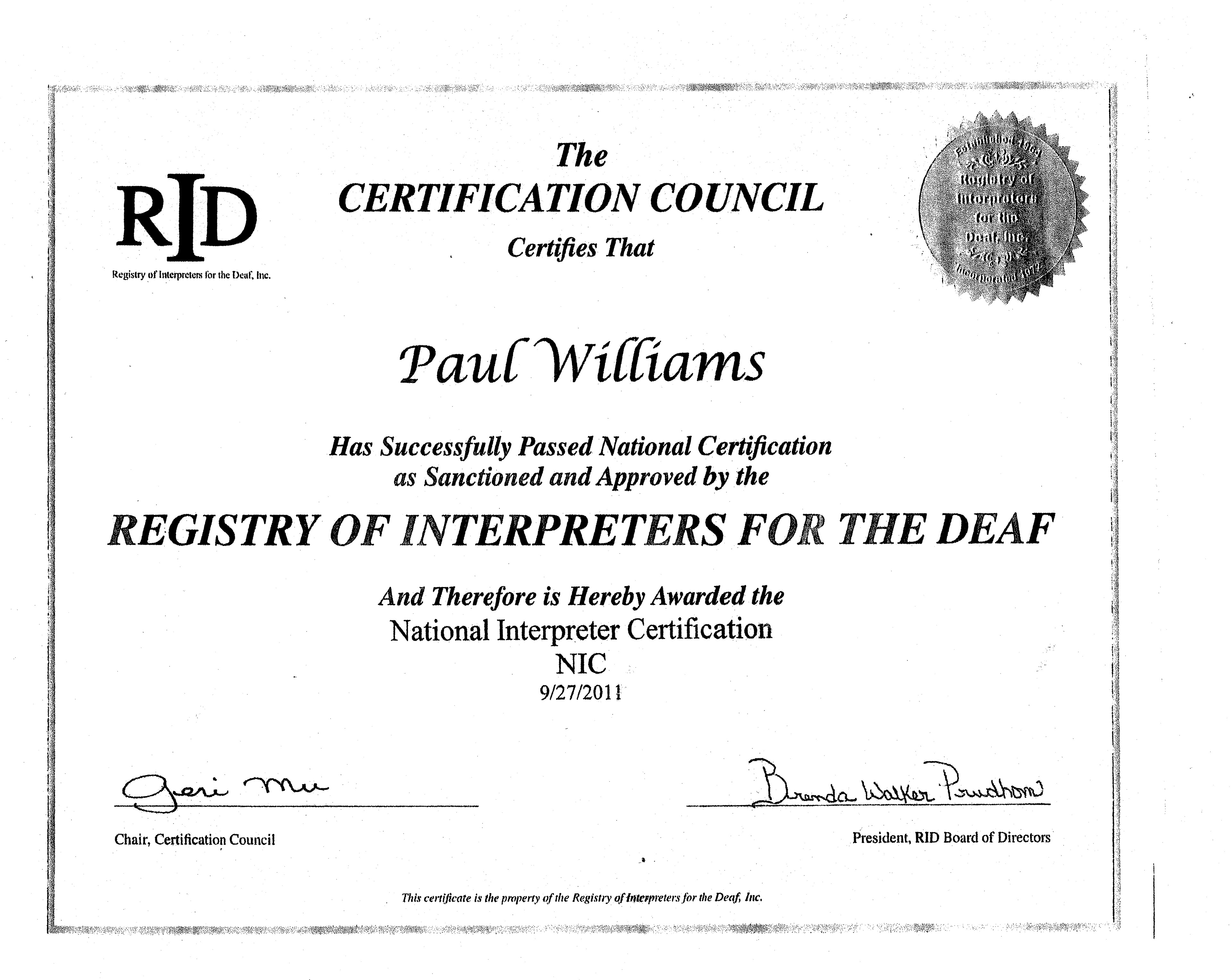 Paul Williams' ASL Credentials